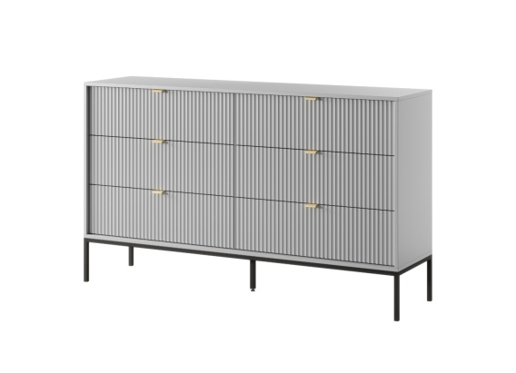 Wprowadź do swojego wnętrza powiew nowoczesnego luksusu dzięki komodzie Aura Grey. Mebel ten to mistrzowskie połączenie funkcjonalności ze sztuką użytkową. Jej znakiem rozpoznawczym są ryflowane fronty, które tworzą niesamowity efekt trójwymiarowości, przełamując nudę płaskich powierzchni i nadając wnętrzu architektonicznej głębi.